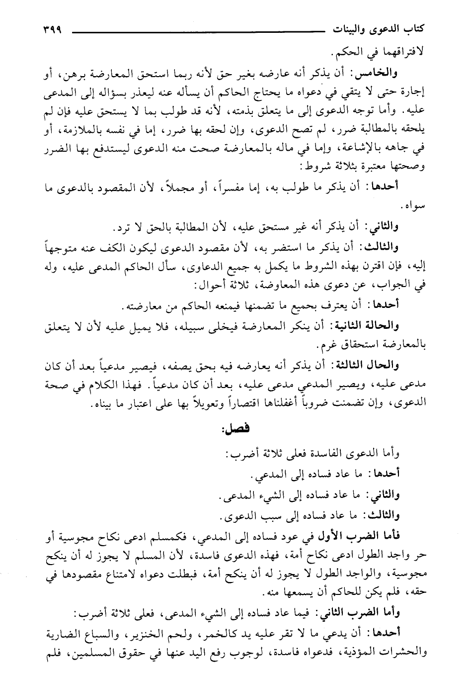 والحال الثالثة: أن يذكر أنه يعارضه فيه بحق يصفه، فيصير مدعيًا بعد أن كان مدعى عليه، ويصير المدعي مدعى عليه، بعد أن كان مدعيًا. فهذا الكلام في صحة الدعوى، وإن تضمنت ضروبًا أغفلناها اقتصارًا وتعويلًا بها على اعتبار ما بيناه.