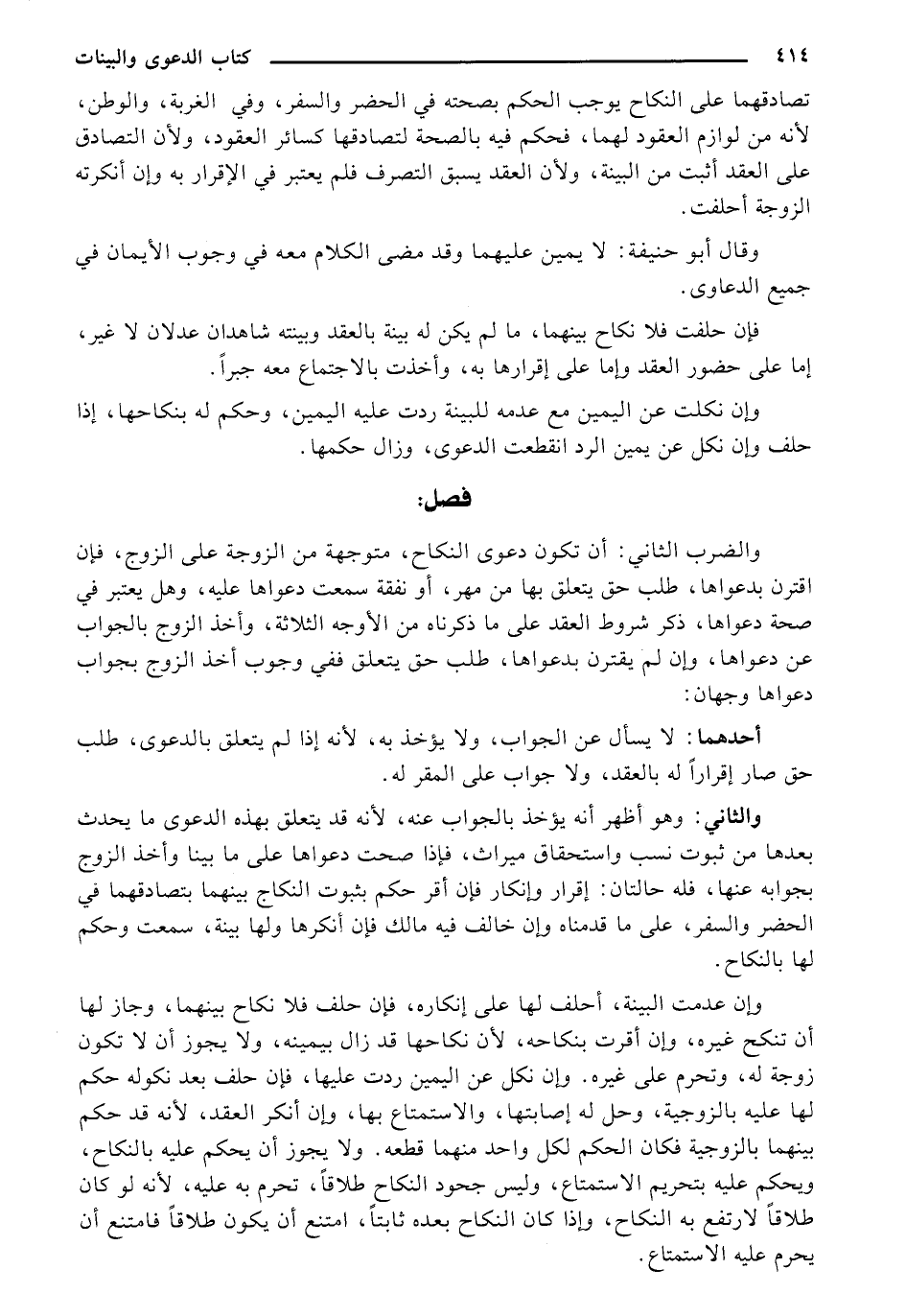 والضرب الثاني: أن تكون دعوى النكاح، متوجهة من الزوجة على الزوج من ضروب دعوى النكاح، فإن اقترن بدعواها، طلب حق يتعلق بها من مهر، أو نفقة سمعت دعواها عليه، وهل يعتبر في صحةً دعواها، ذكر شروط العقد على ما ذكرناه من الأوجه الثلاثة، وأخذ الزوج بالجواب عن دعواها، وإن لم يقترن بدعواها، طلب حق يتعلق ففي وجوب أخذ الزوج بجواب دعواها وجهان: