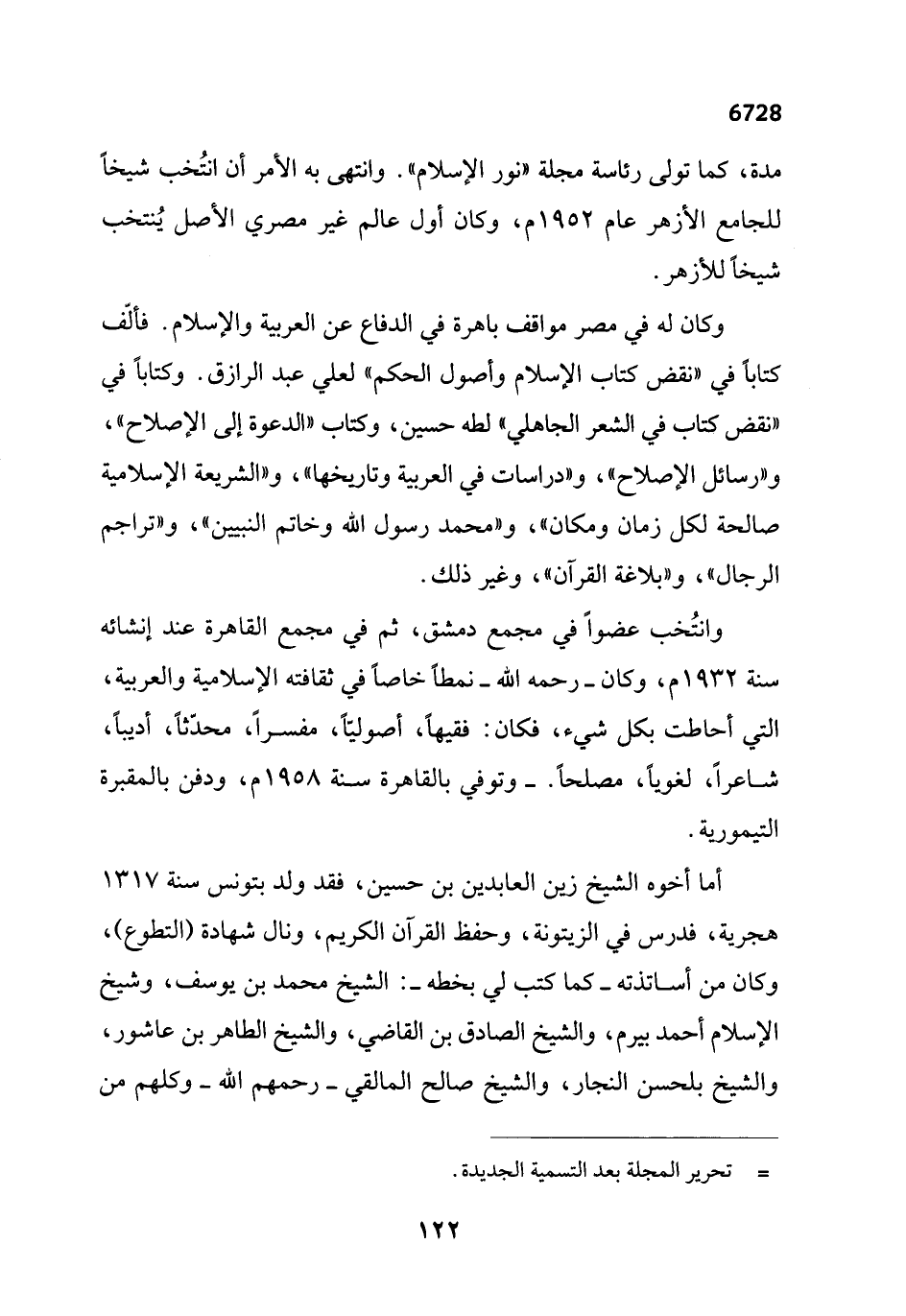 وانتُخب عضواً في مجمع دمشق، ثم في مجمع القاهرة عند إنشائه سنة 1932 م، وكان -رحمه الله- نمطاً خاصاً في ثقافته الإسلامية والعربية، التي أحاطت بكل شيء، فكان: فقيهاً، أصوليّاً، مفسراً، محدّثاً، أديباً، شاعراً، لغوياً، مصلحاً.- وتوفي بالقاهرة سنة 1958 م، ودفن بالمقبرة التيمورية.