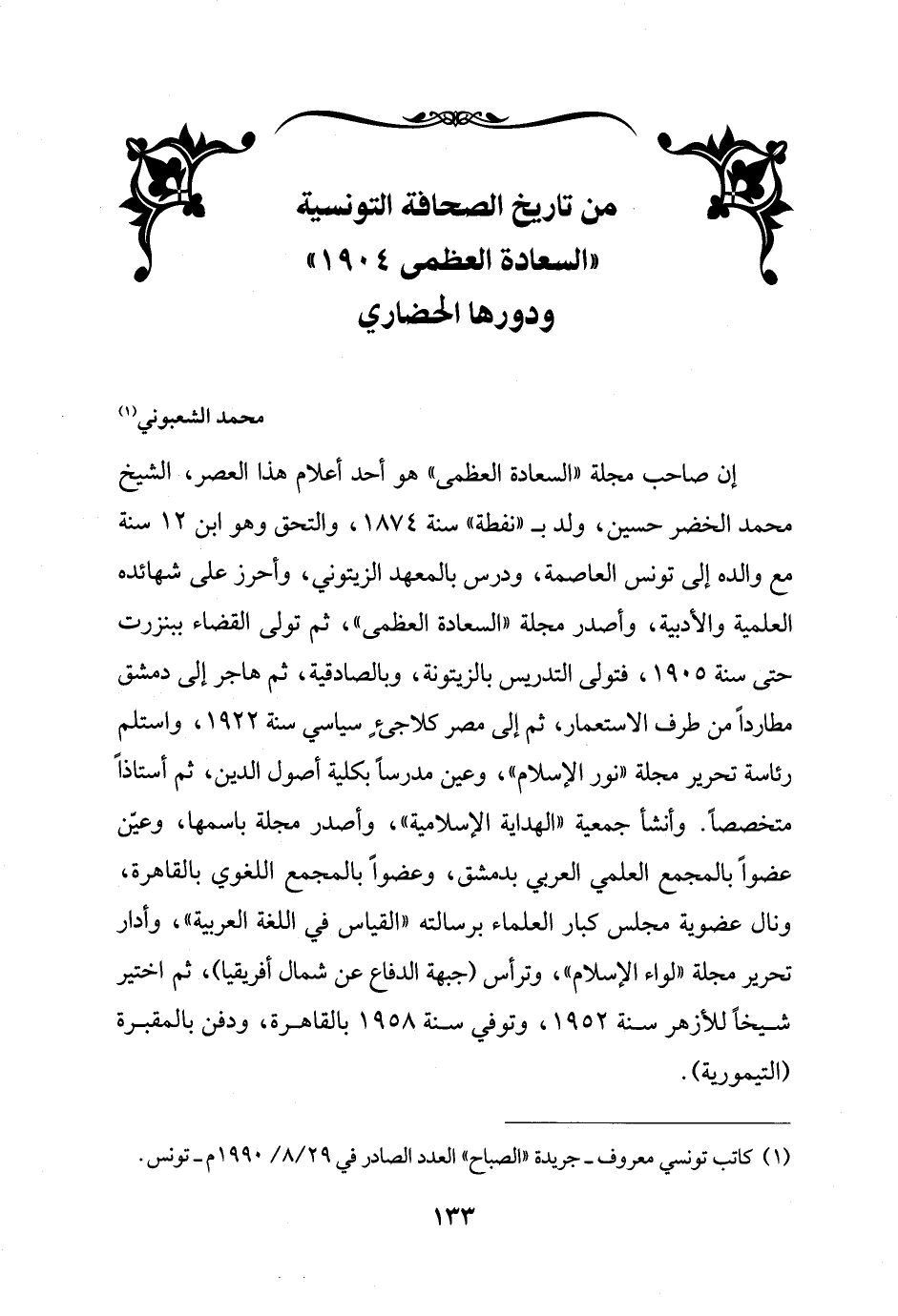 من تاريخ الصحافة التونسية "السعادة العظمى 1904" ودورها الحضاري