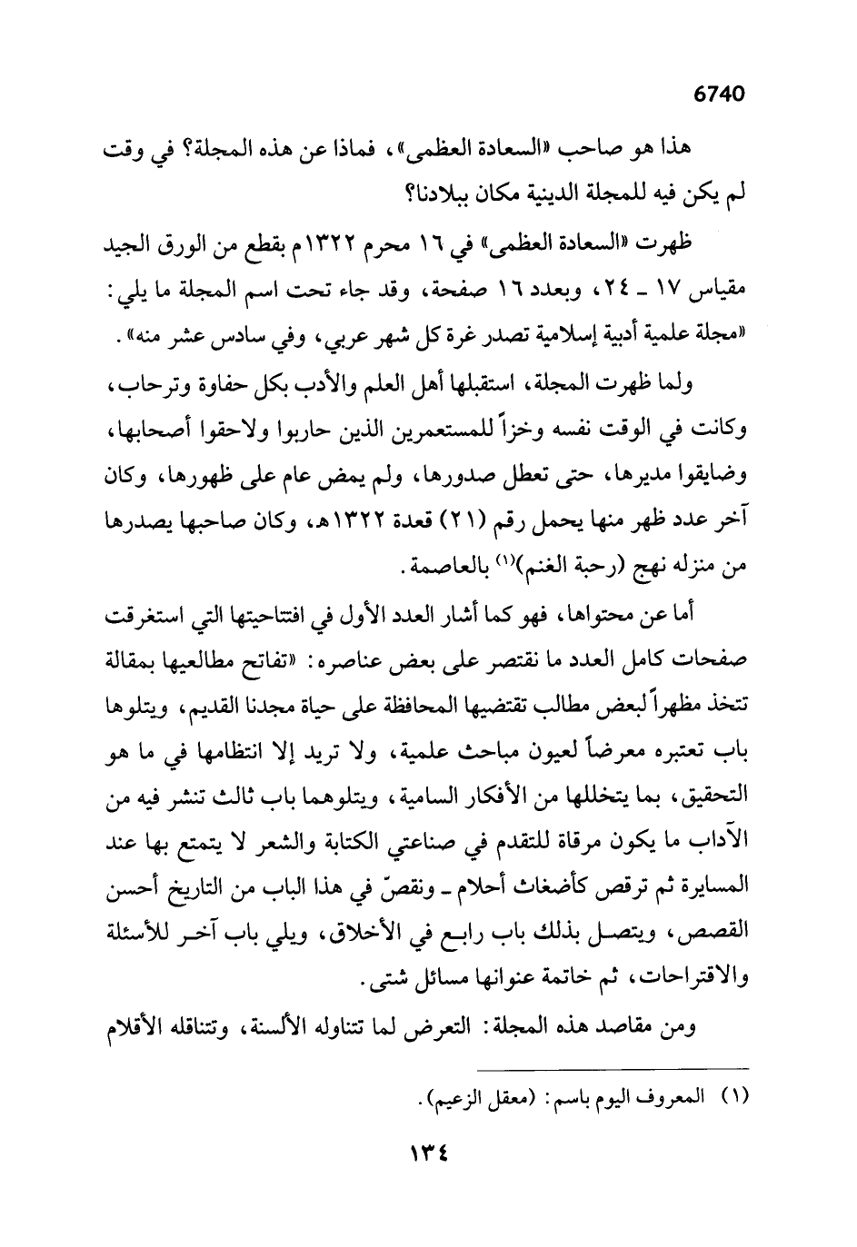 هذا هو صاحب "السعادة العظمى"، فإذا عن هذه المجلة؟ في وقت لم يكن فيه للمجلة الدينية مكان ببلادنا؟
