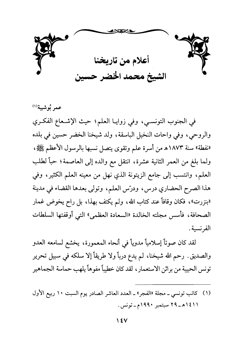 أعلام من تاريخنا الشيخ محمد الخضر حسين