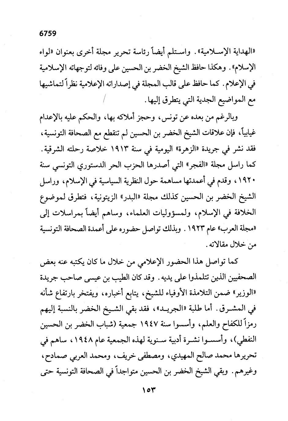 "الهداية الإسلامية". واستلم أيضاً رئاسة تحرير مجلة أخرى بعنوان "لواء الإسلام". وهكذا حافظ الشيخ الخضر بن الحسين على وفائه لتوجهاته الإسلامية في الإعلام. كما حافظ على قالب المجلة في إصداراته الإعلامية نظراً لتماشيها مع المواضيع الجدية التي يتطرق إليها.