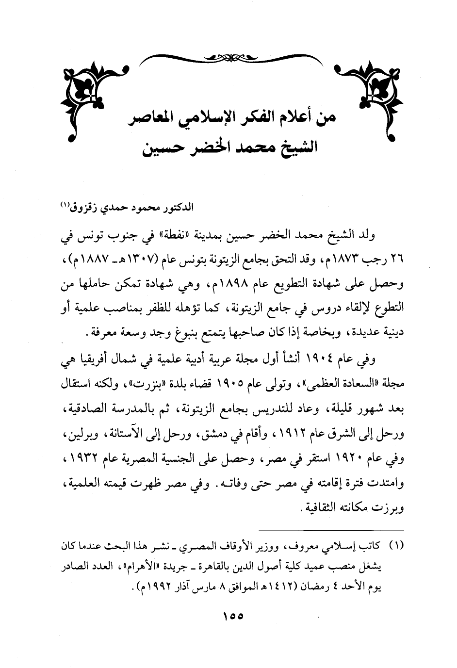 من أعلام الفكر الإسلامي المعاصر الشيخ محمد الخضر حسين