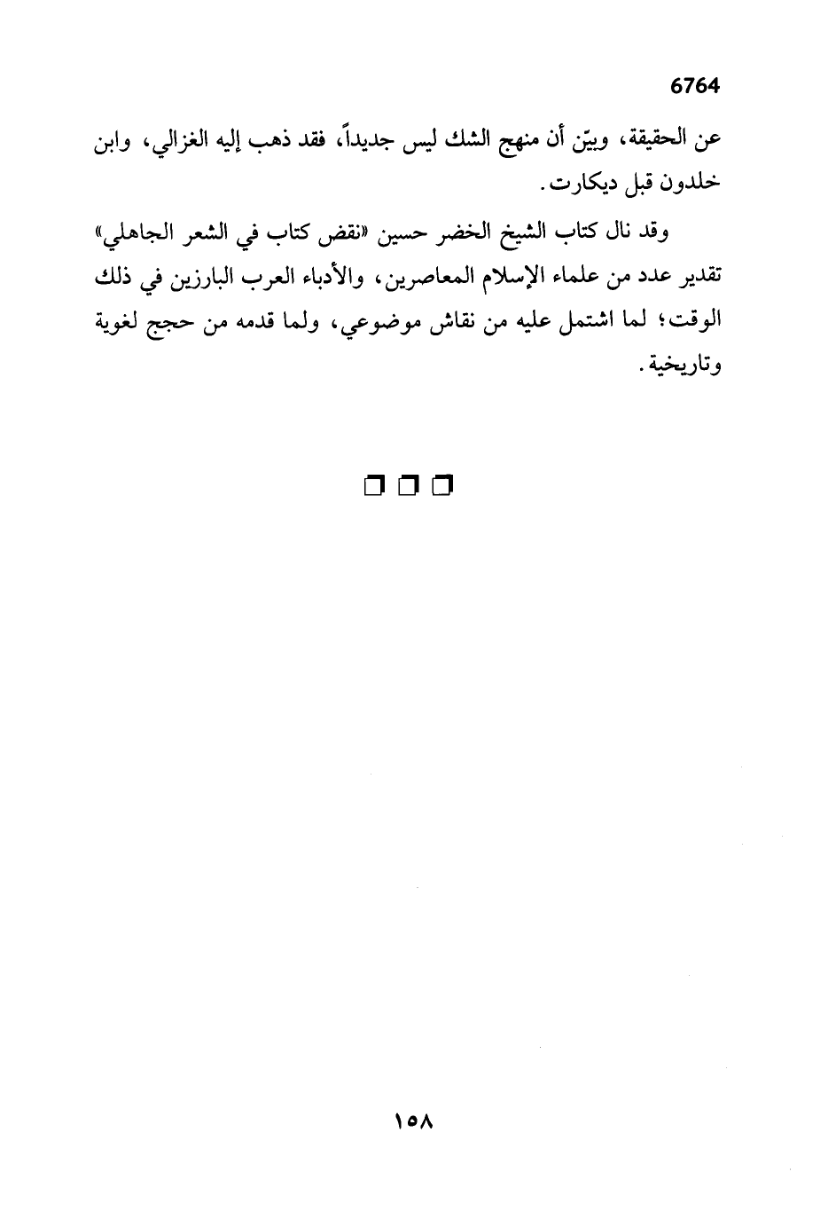 عن الحقيقة، وبيّن أن منهج الشك ليس جديداً، فقد ذهب إليه الغزالي، وابن خلدون قبل ديكارت.