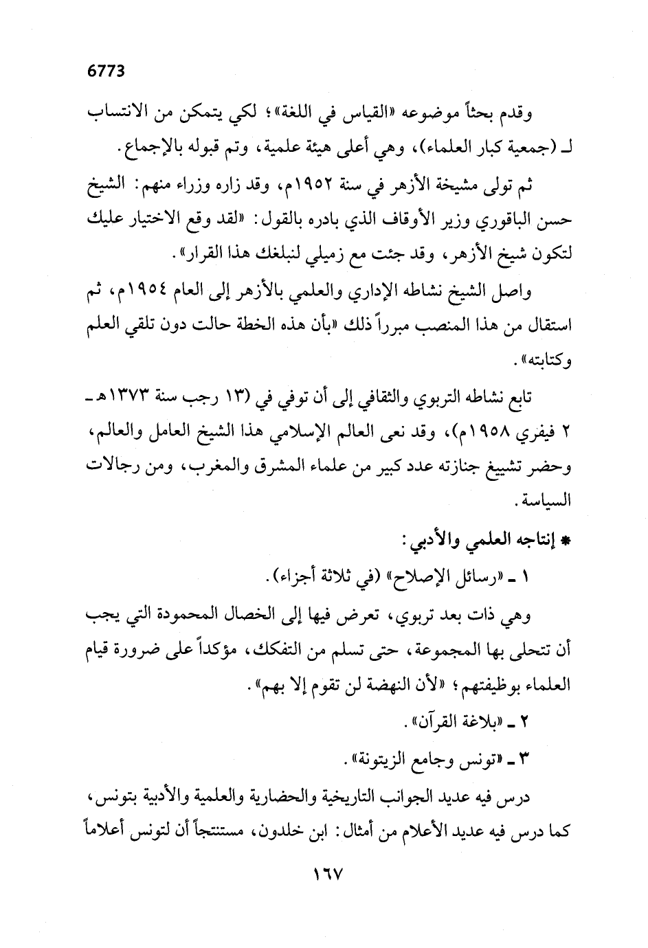 تابع نشاطه التربوي والثقافي إلى أن توفي في (13 رجب سنة 1373 هـ - 2 فيفري 1958 م)، وقد نعى العالم الإسلامي هذا الشيخ العامل والعالم، وحضر تشييغ جنازته عدد كبير من علماء المشرق والمغرب، ومن رجالات السياسة.