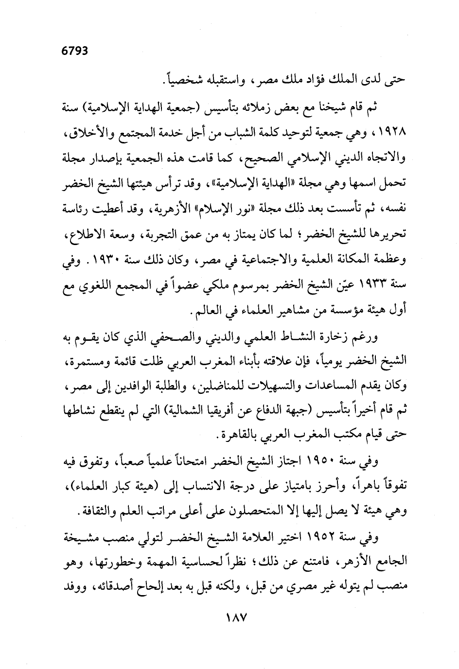 ثم قام شيخنا مع بعض زملائه بتأسيس (جمعية الهداية الإسلامية) سنة 1928، وهي جمعية لتوحيد كلمة الشباب من أجل خدمة المجتمع والأخلاق، والاتجاه الديني الإسلامي الصحيح، كما قامت هذه الجمعية بإصدار مجلة تحمل اسمها وهي مجلة "الهداية الإسلامية"، وقد ترأس هيئتها الشيخ الخضر نفسه، ثم تأسست بعد ذلك مجلة "نور الإسلام" الأزهرية، وقد أعطيت رئاسة تحريرها للشيخ الخضرة لما كان يمتاز به من عمق التجربة، وسعة الاطلاع، وعظمة المكانة العلمية والاجتماعية في مصر، وكان ذلك سنة 1930. وفي سنة 1933 عيّن الشيخ الخضر بمرسوم ملكي عضواً في المجمع اللغوي مع أول هيئة مؤسسة من مشاهير العلماء في العالم.