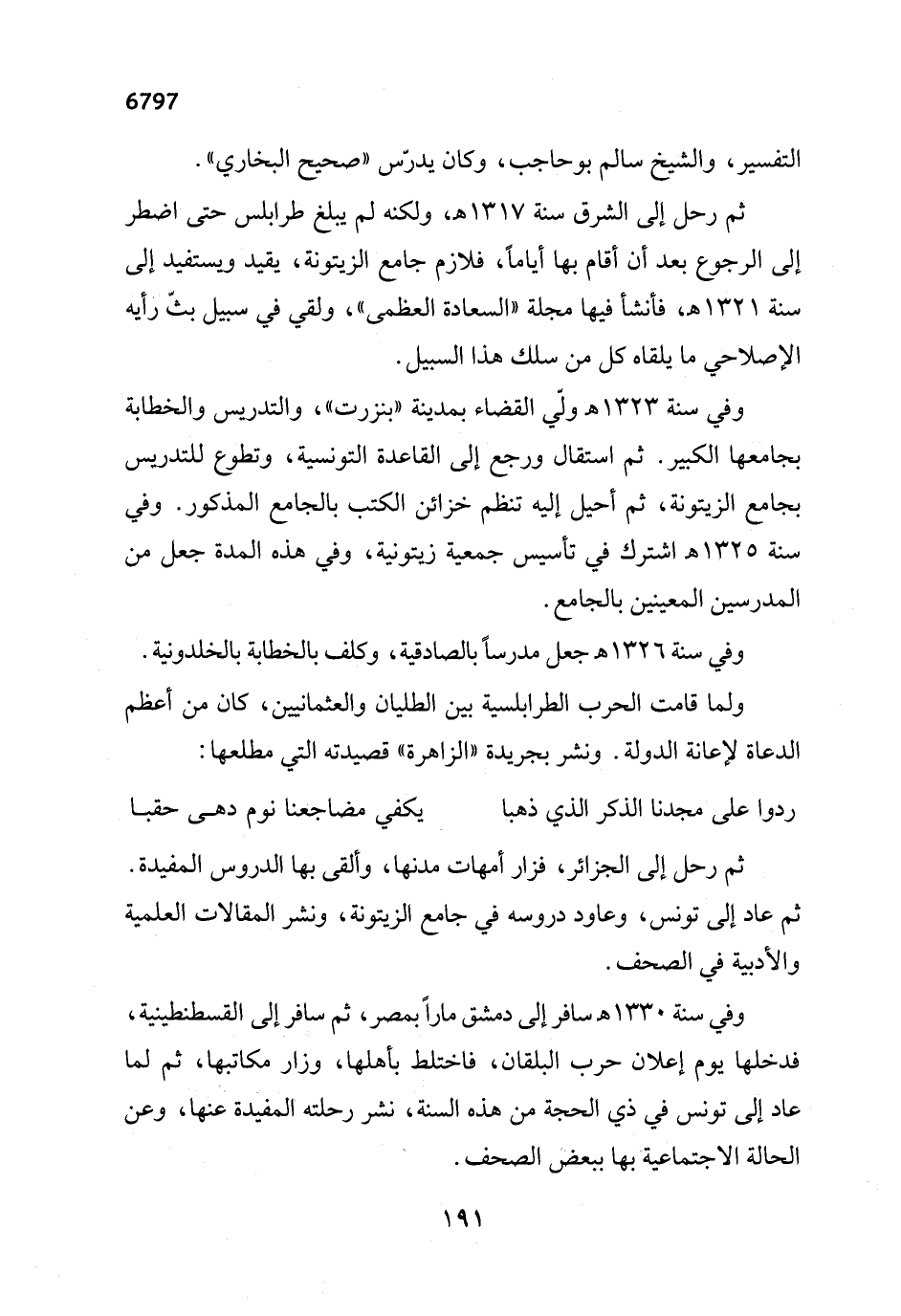 ثم رحل إلى الجزائر، فزار أمهات مدنها، وألقى بها الدروس المفيدة. ثم عاد إلى تونس، وعاود دروسه في جامع الزيتونة، ونشر المقالات العلمية والأدبية في الصحف.