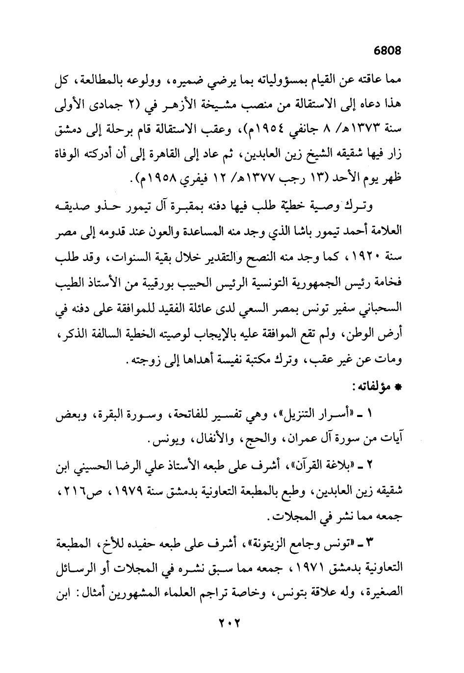 3 - "تونس وجامع الزيتونة"، أشرف على طبعه حفيده للأخ، المطبعة التعاونية بدمشق 1971، جمعه مما سبق نشره في المجلات أو الرسائل الصغيرة، وله علاقة بتونس، وخاصة تراجم العلماء المشهورين أمثال: ابن