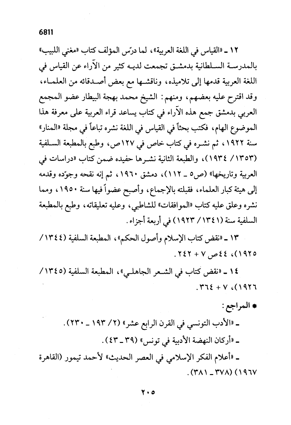 - "الأدب التونسي في القرن الرابع عشر" (2/ 193 - 230).