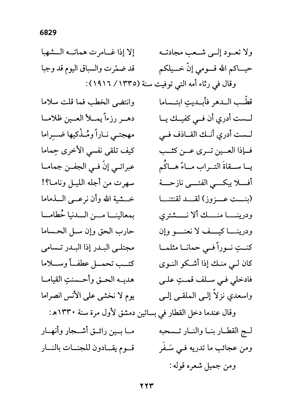 وقال في رثاء أمه التي توفيت سنة (1335/ 1916):