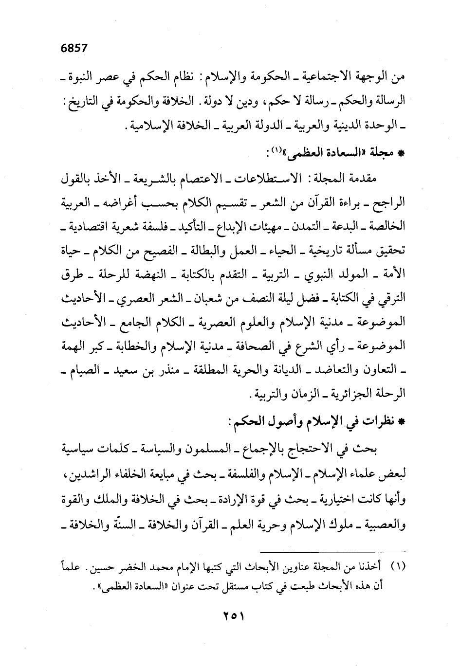 (¬1) أخذنا من المجلة عناوين الأبحاث التي كتبها الإمام محمد الخضر حسين. علماً أن هذه الأبحاث طبعت في كتاب مستقل تحت عنوان "السعادة العظمى".