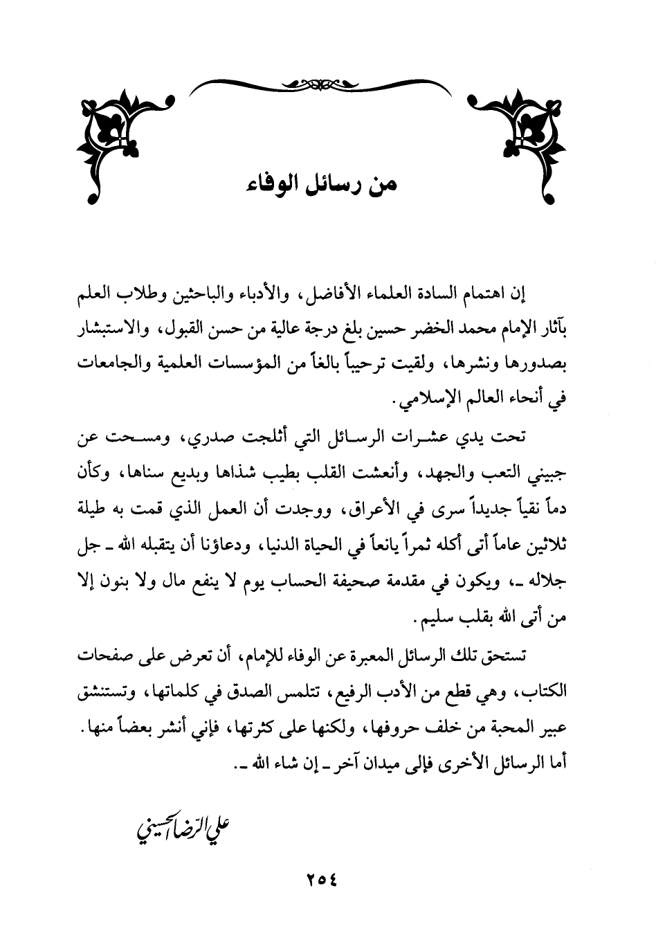 تستحق تلك الرسائل المعبرة عن الوفاء للإمام، أن تعرض على صفحات الكتاب، وهي قطع من الأدب الرفيع، تتلمس الصدق في كلماتها، وتستنشق عبير المحبة من خلف حروفها، ولكنها على كثرتها، فإني أنشر بعضاً منها. أما الرسائل الأخرى فإلى ميدان آخر -إن شاء الله-.
