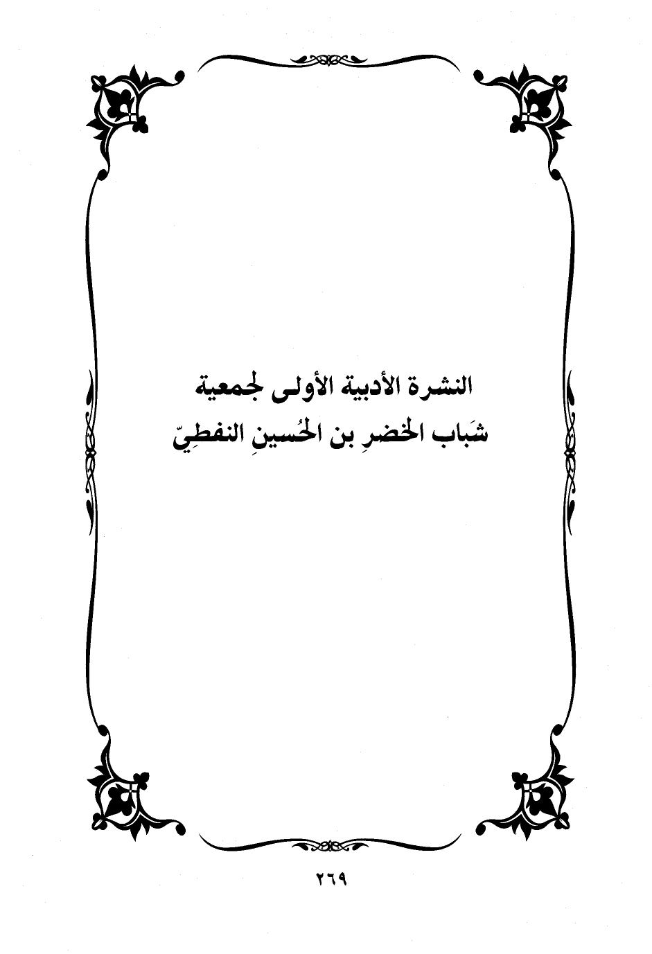 النشرة الأدبية الأولى لجمعية شَباب الخضرِ بن الحُسينِ النفطِيّ