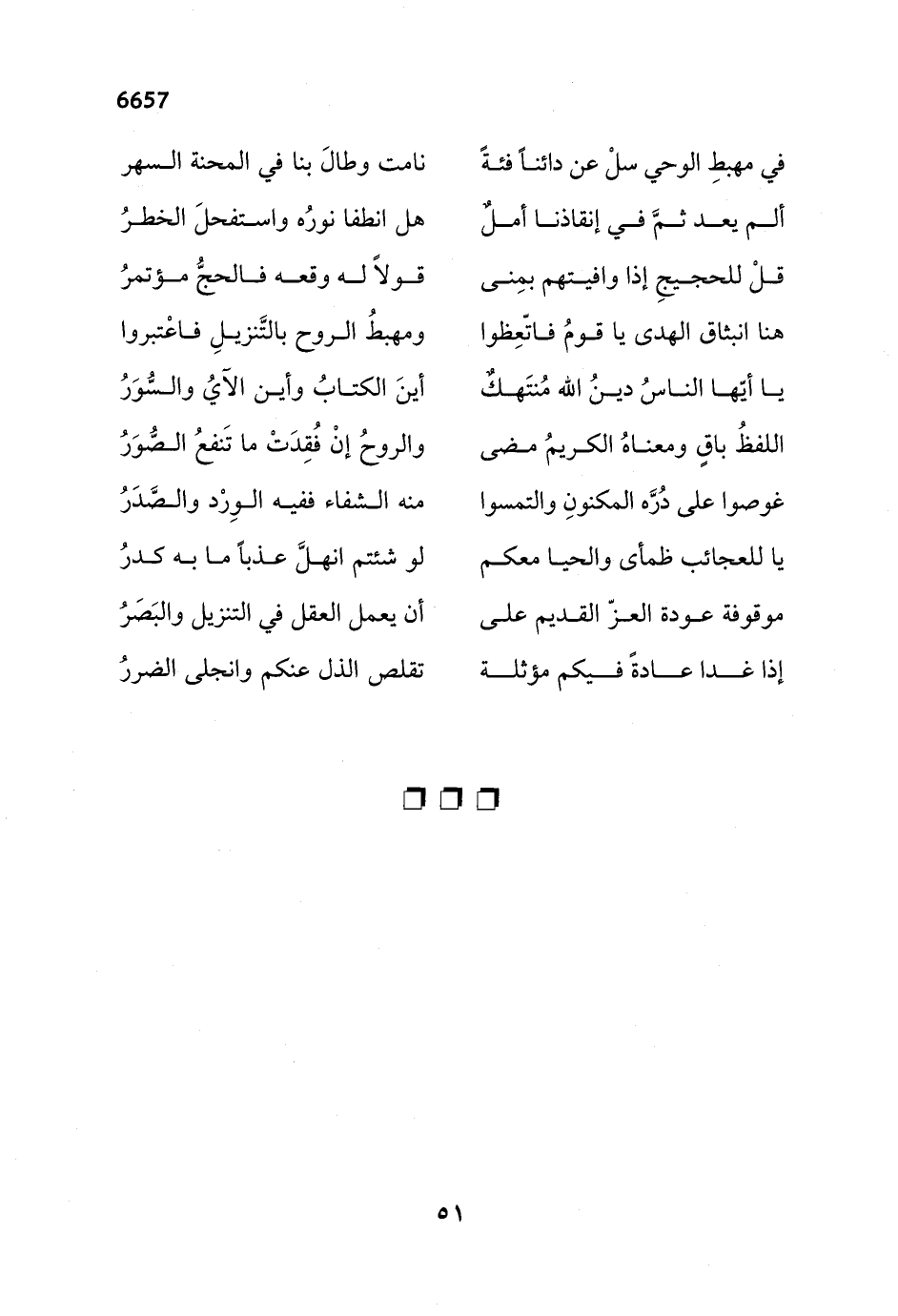 هنا انبثاق الهدى يا قومُ فاتّعِظوا ... ومهبطُ الروح بالتَّنزيلِ فاعْتبروا