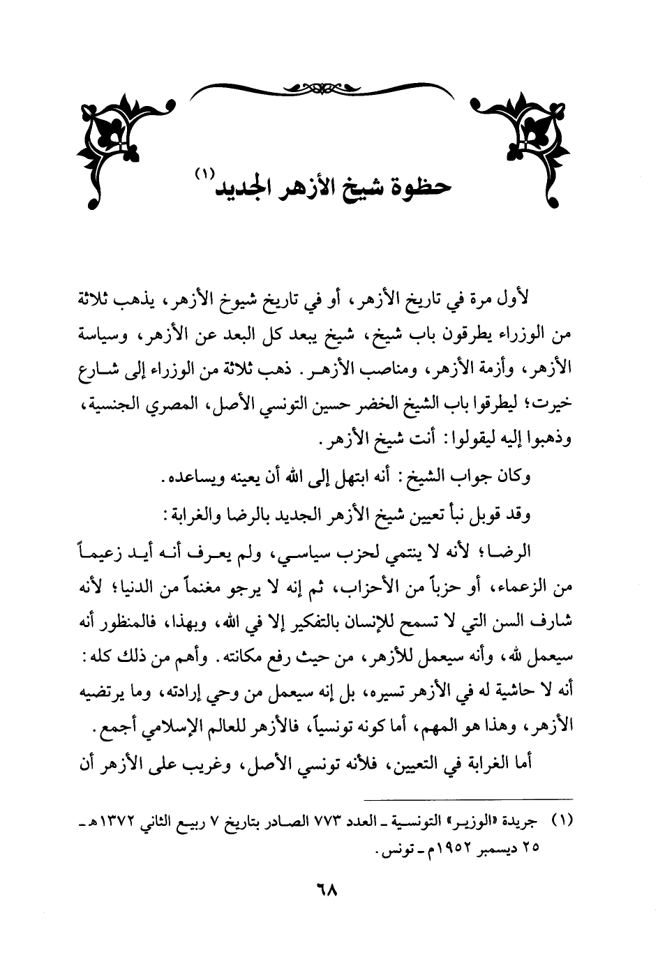 (¬1) جريدة "الوزير" التونسية - العدد 773 الصادر بتاريخ 7 ربيع الثاني 1372 هـ - 25 ديسمبر 1952 م - تونس.