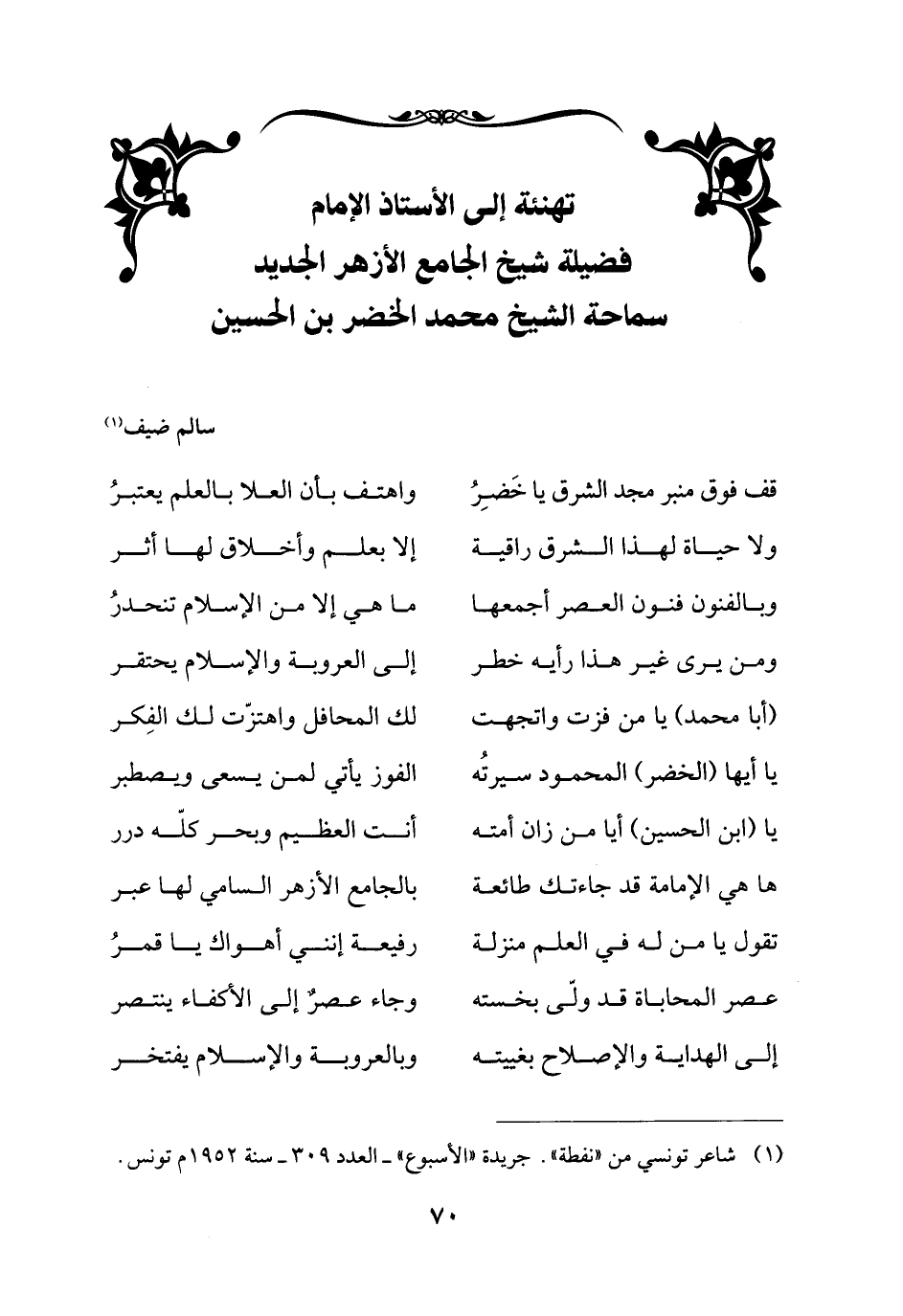 (¬1) شاعر تونسي من "نفطة". جريدة "الأسبوع" - العدد 309 - سنة 1952 م تونس.