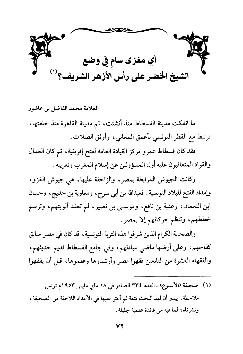 (¬1) صحيفة"الأسبوع"- العدد 334 الصادر في 18 ماي مايس 1953 م تونس.