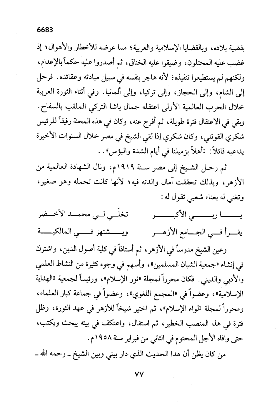 بقضية بلاده، وبالقضايا الإسلامية والعربية؛ مما عرضه للأخطار والأهوال؛ إذ غضب عليه المحتلون، وضيقوا عليه الخناق، ثم أصدروا عليه حكماً بالإعدام، ولكنهم لم يستطيعوا تنفيذه؛ لأنه هاجر بنفسه في سبيل مبادئه وعقائده. فرحل إلى الشام، وإلى الحجاز، وإلى تركيا، وإلى ألمانيا. وفي أثناء الثورة العربية خلال الحرب العالمية الأولى اعتقله جمال باشا التركي الملقب بالسفاح. ويقي في الاعتقال فترة طويلة، ثم أفرج عنه، وكان في هذه المحنة رفيقاً للرئيس شكري القوتلي، وكان شكري إذا لقي الشيخ في مصر خلال السنوات الأخيرة يداعبه قائلاً: "أهلاً بزميلنا في أيام الشدة والبؤس" ..