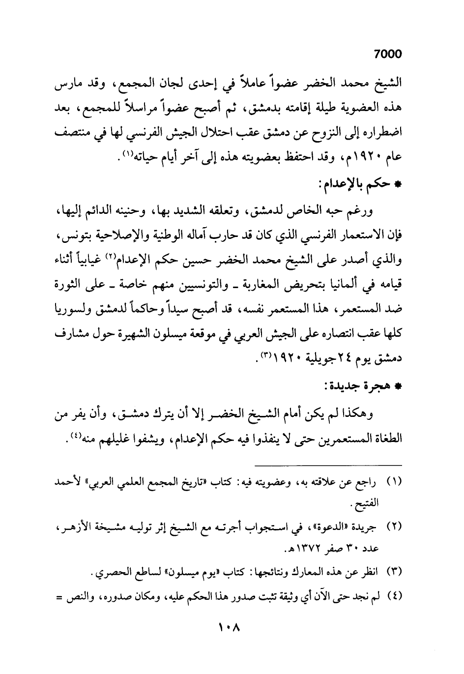 وهكذا لم يكن أمام الشيخ الخضر إلا أن يترك دمشق، وأن يفر من الطغاة المستعمرين حتى لا ينفذوا فيه حكم الإعدام، ويشفوا غليلهم منه (¬4).
