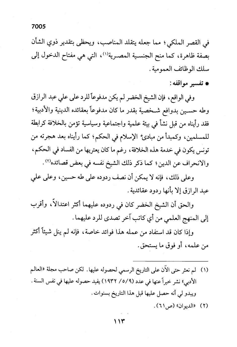 والحق أن الشيخ الخضر كان في ردوده عليهما أكثر اعتدالاً، وأقرب إلى المنهج العلمي من أي كاتب آخر تصدى للرد عليهما.