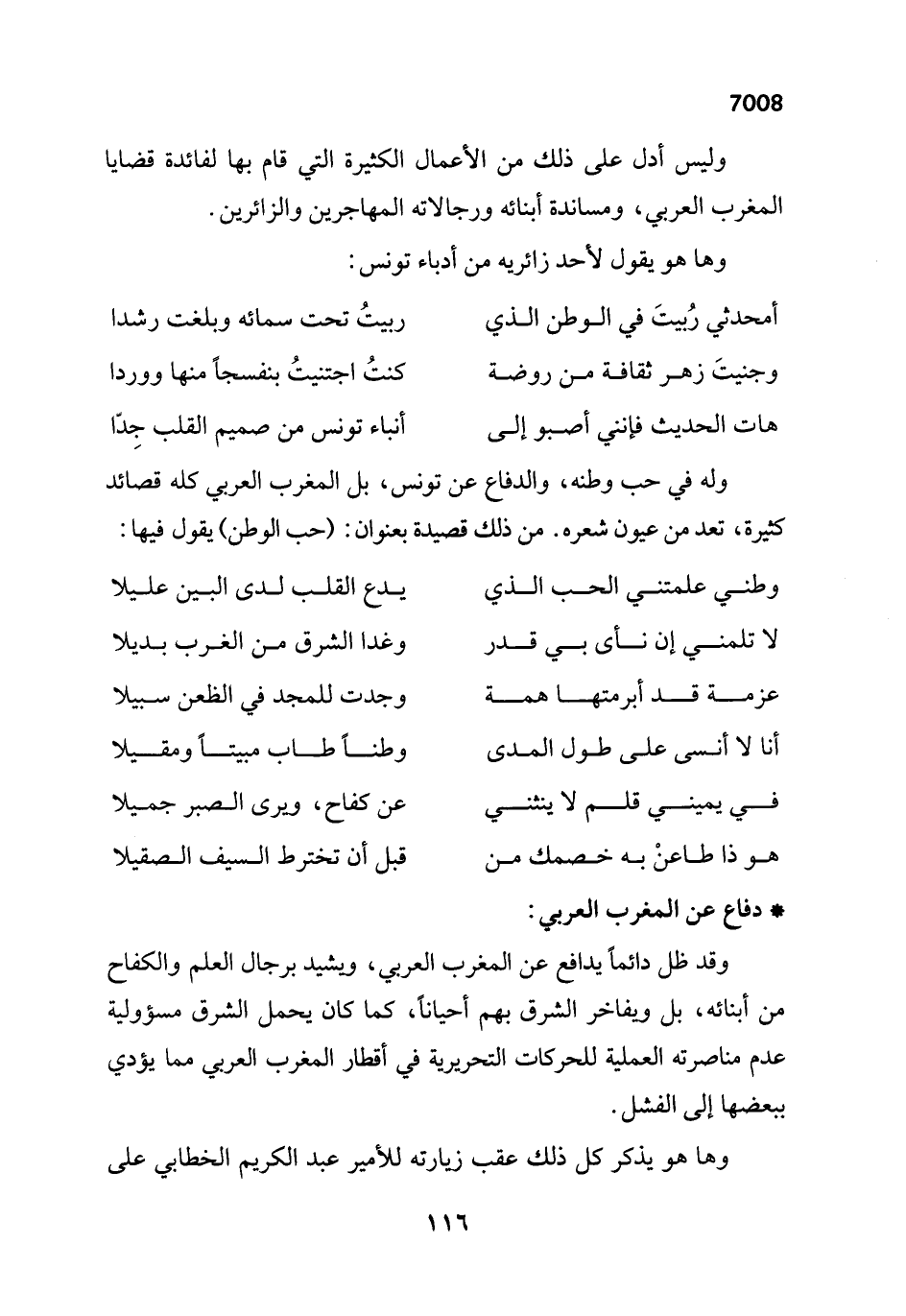 وليس أدل على ذلك من الأعمال الكثيرة التي قام بها لفائدة قضايا المغرب العربي، ومساندة أبنائه ورجالاته المهاجرين والزائرين.