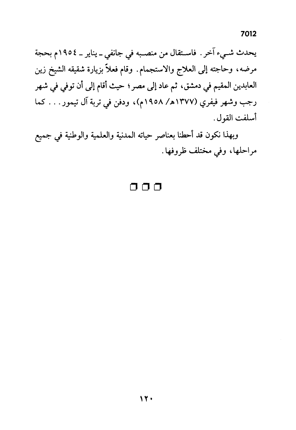 وبهذا نكون قد أحطنا بعناصر حياته المدنية والعلمية والوطنية في جميع مراحلها، وفي مختلف ظروفها.