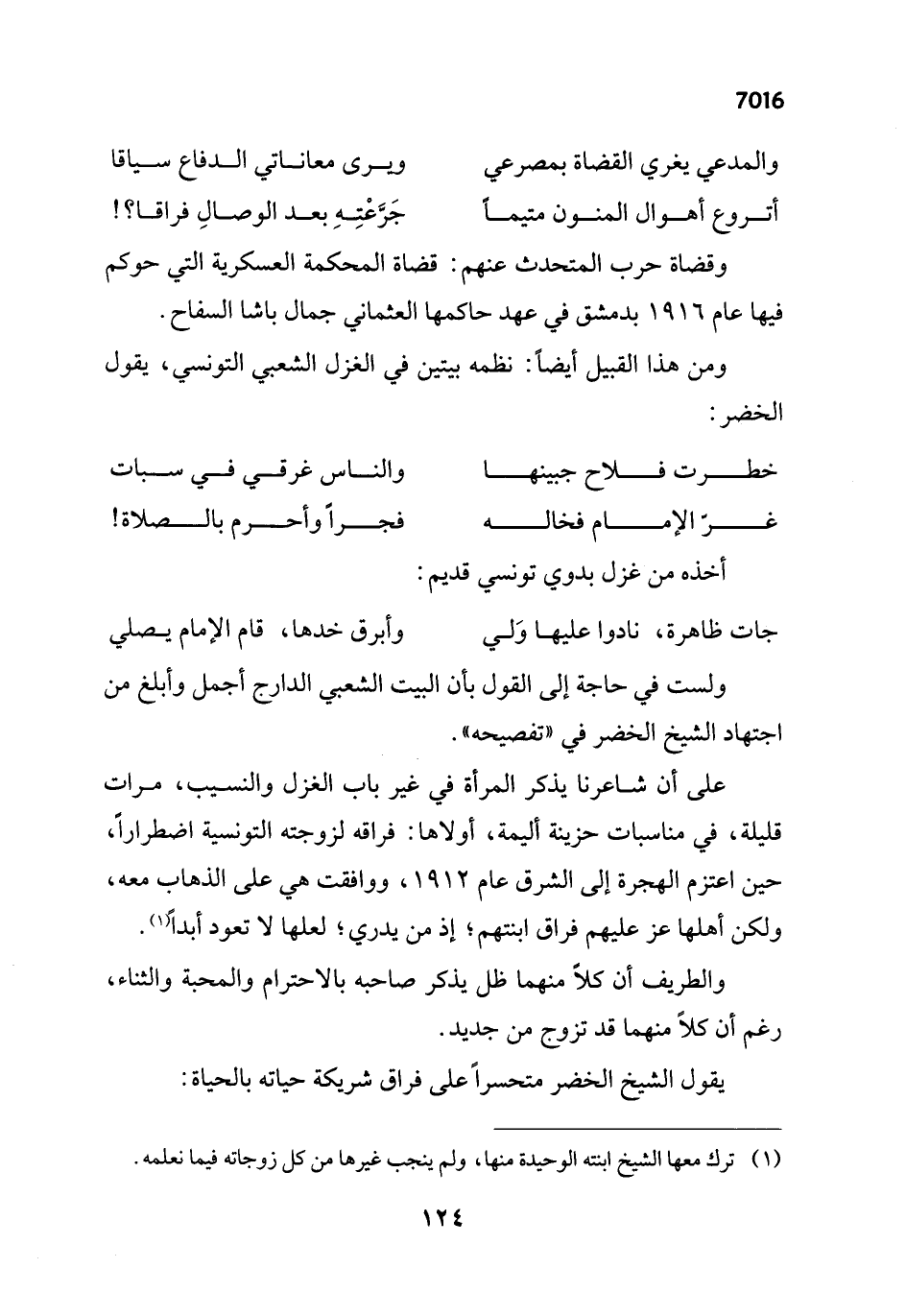 ومن هذا القبيل أيضاً: نظمه بيتين في الغزل الشعبي التونسي، يقول الخضر: