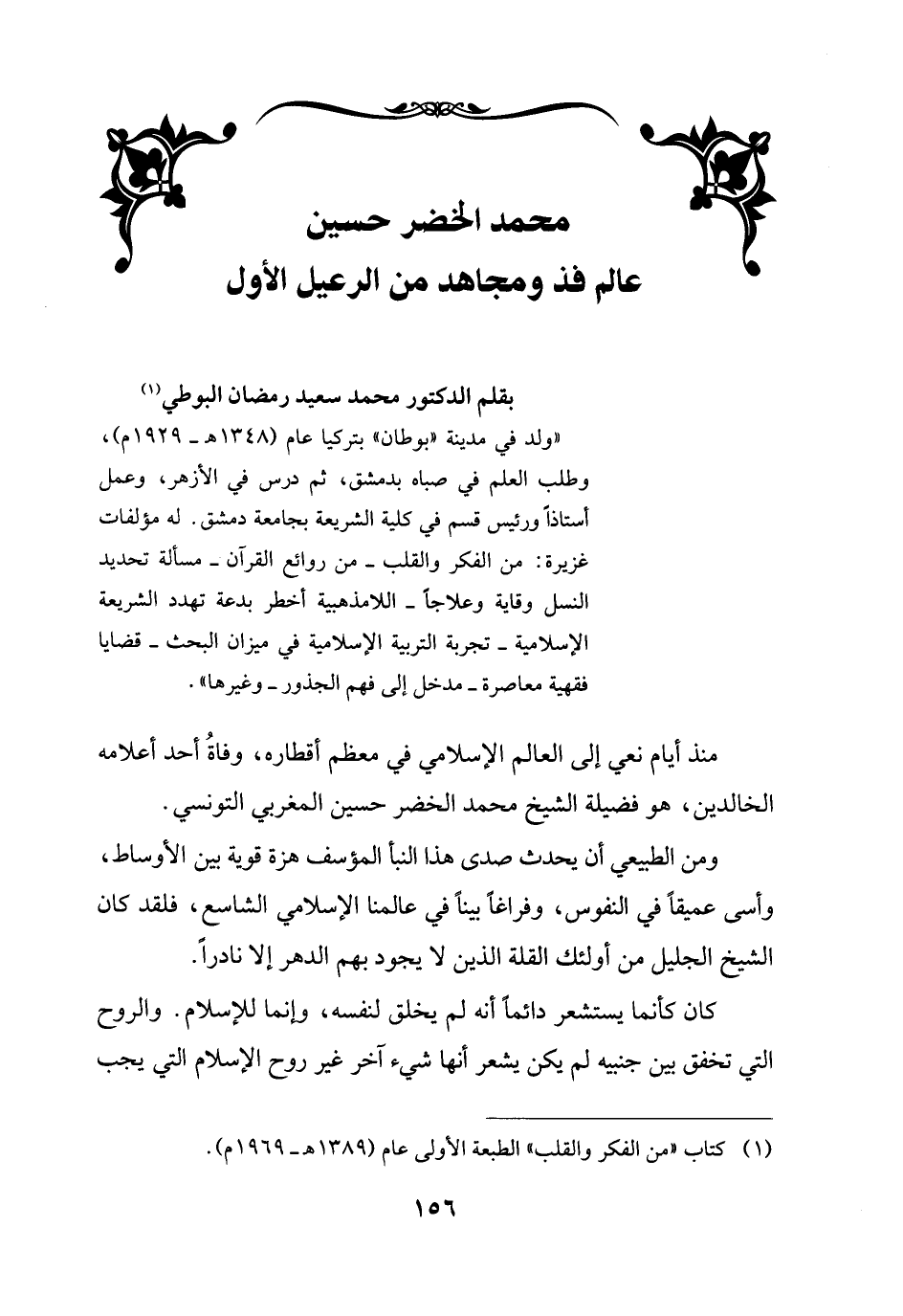 (¬1) كتاب "من الفكر والقلب" الطبعة الأولى عام (1389 هـ -1969 م ".