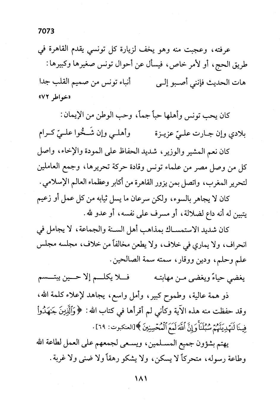 عرفته، وعجبت منه وهو يخف لزيارة كل تونسي يقدم القاهرة في طريق الحج، أو لأمر خاص، فيسأل عن أحوال تونس صغيرها وكبيرها: