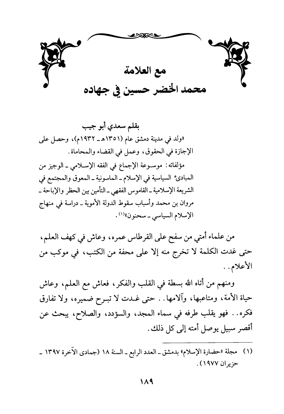 (¬1) مجلة "حضارة الإسلام" بدمشق - العدد الرابع - السنة 18 (جمادى الآخرة 1397 - حزيران 1977).