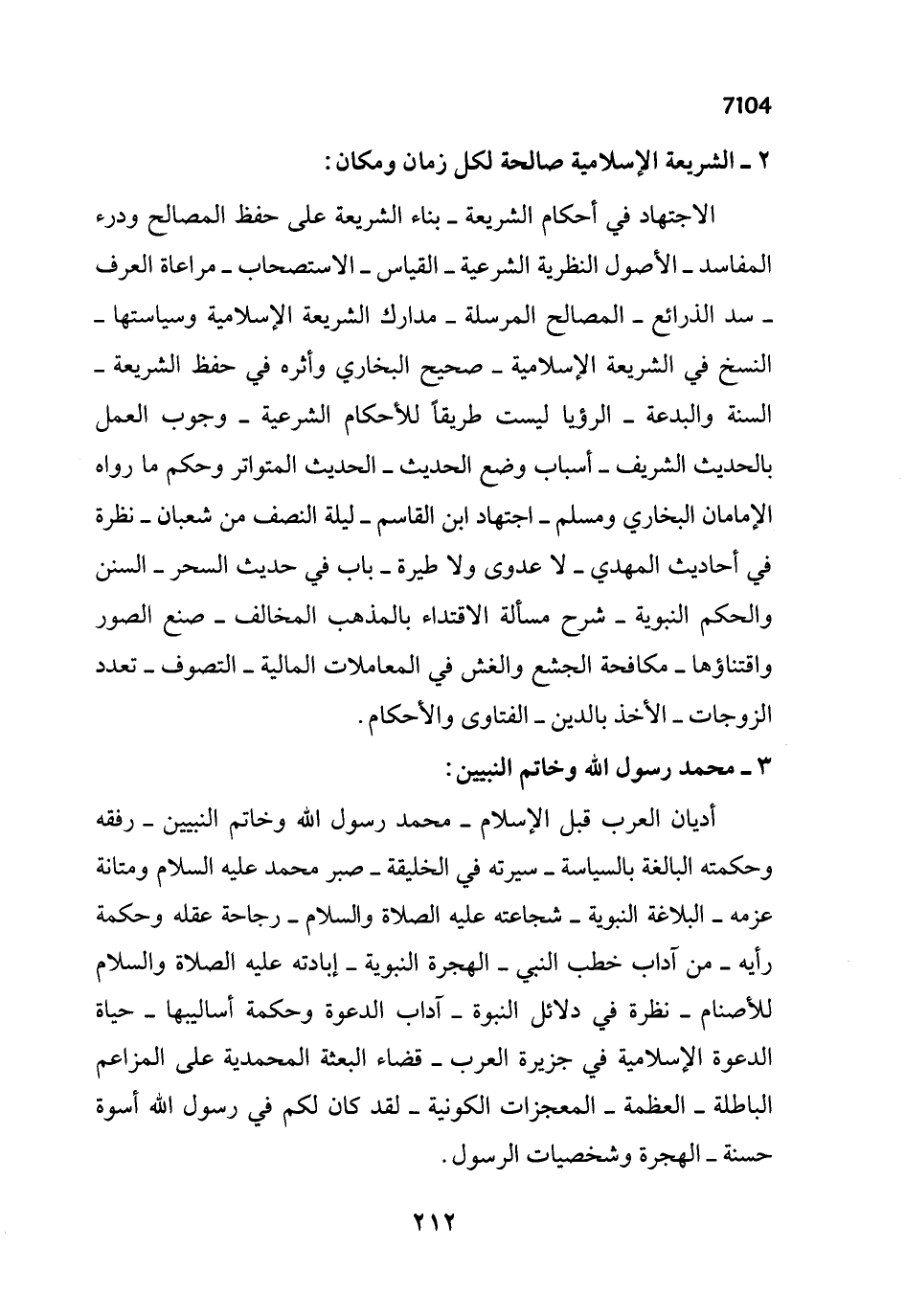2 - الشريعة الإِسلامية صالحة لكل زمان ومكان: