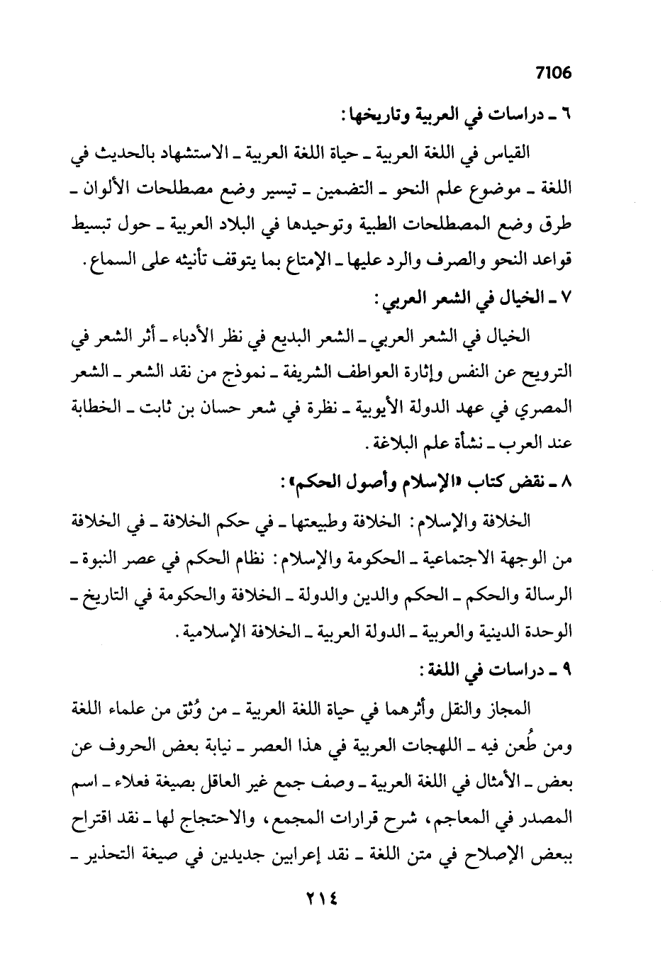 الخيال في الشعر العربي- الشعر البديع في نظر الأدباء - أثر الشعر في الترويح عن النفس وإثارة العواطف الشريفة - نموذج من نقد الشعر- الشعر المصري في عهد الدولة الأيوبية - نظرة في شعر حسان بن ثابت - الخطابة عند العرب - نشأة علم البلاغة.