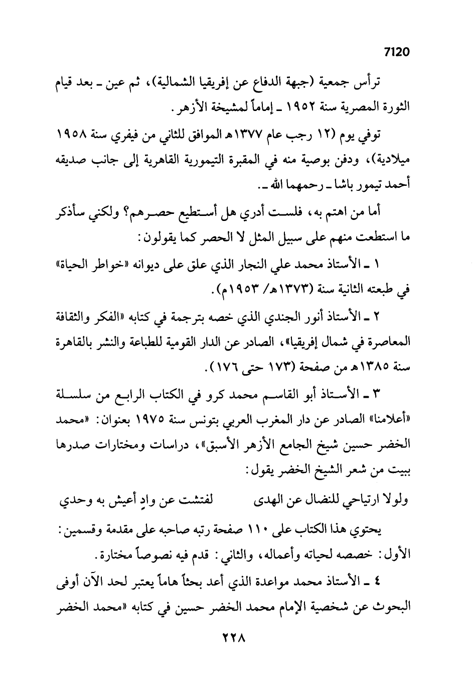 4 - الأستاذ محمد مواعدة الذي أعد بحثاً هاماً يعتبر لحد الآن أوفى البحوث عن شخصية الإمام محمد الخضر حسين في كتابه "محمد الخضر