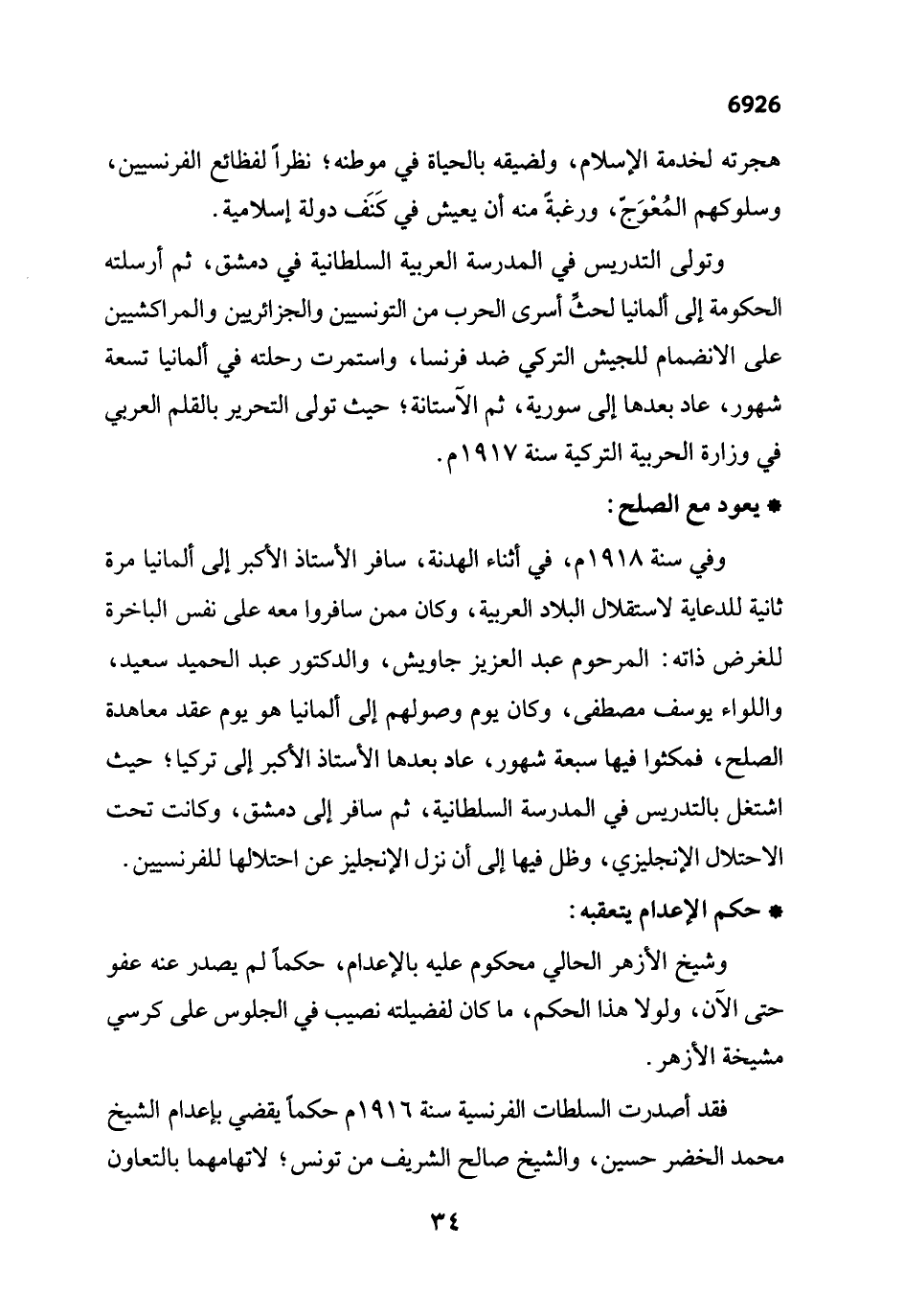 فقد أصدرت السلطات الفرنسية سنة 1916 م حكماً يقضي بإعدام الشيخ محمد الخضر حسين، والشيخ صالح الشريف من تونس؛ لاتهامهما بالتعاون