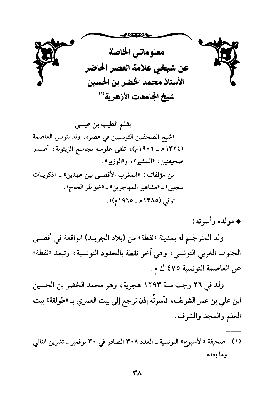 (¬1) صحيفة "الأسبوع" التونسية - العدد 308 الصادر في 30 نوفمبر - تشرين الثاني وما بعده.