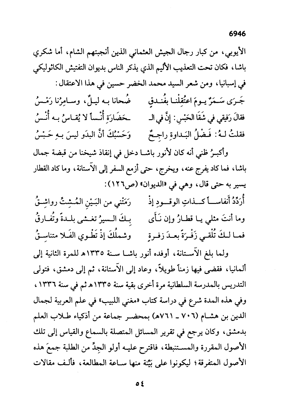 وأكبرُ ظني أنه كان لأنور باشا دخل في إنقاذ شيخنا من قبضة جمال باشا، فما كاد يفرج عنه، ويخرج، حتى أزمع السفر إلى الآستانة، وما كاد القطار يسير به حتى قال، وهي في "الديوان" (ص 126):