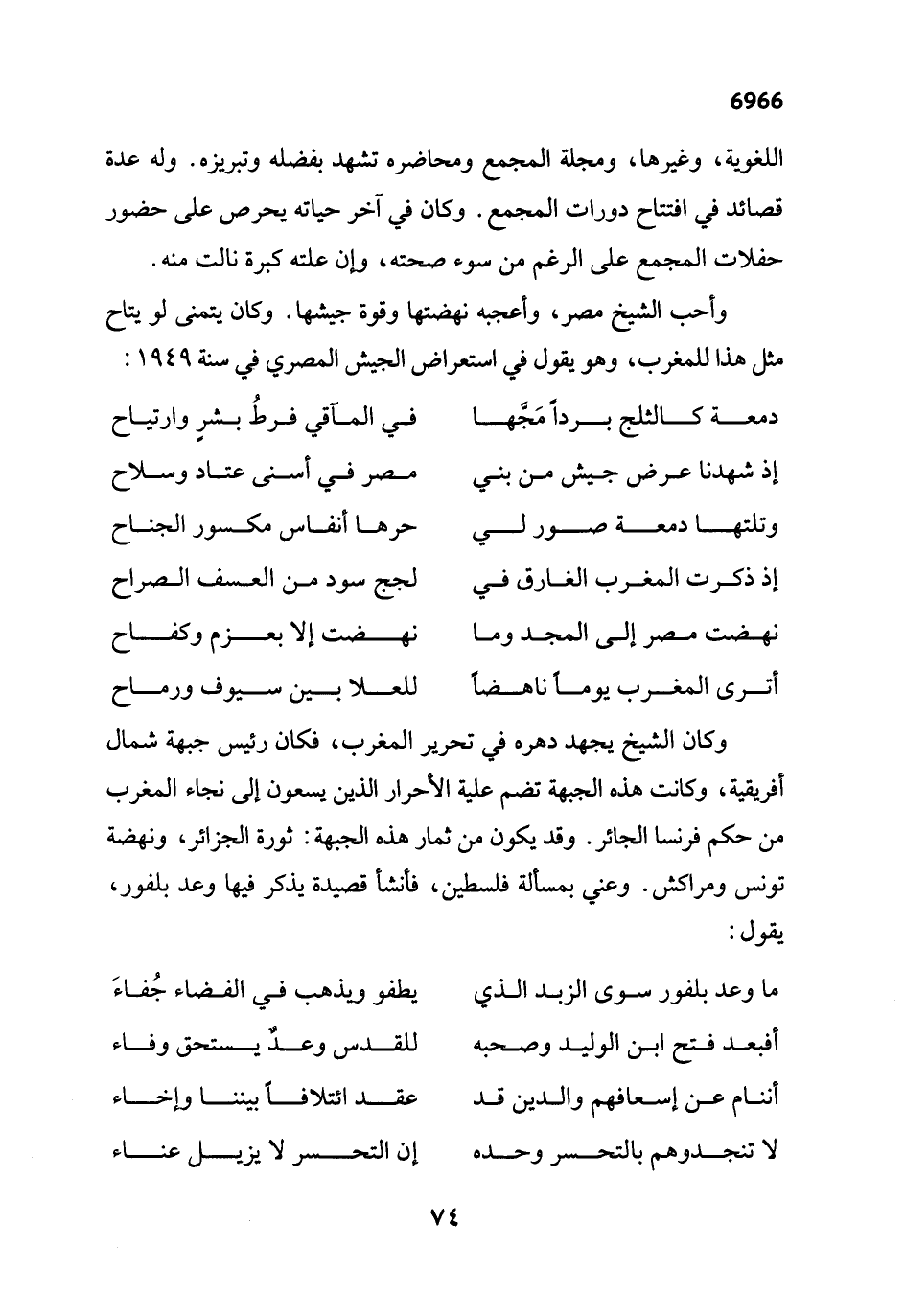 اللغوية، وغيرها، ومجلة المجمع ومحاضره تشهد بفضله وتبريزه. وله عدة قصائد في افتتاح دورات المجمع. وكان في آخر حياته يحرص على حضور حفلات المجمع على الرغم من سوء صحته، وإن علته كثيرة نالت منه.