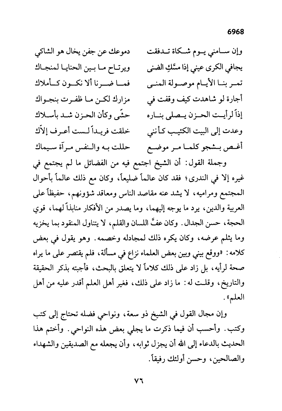 وإن مجال القول في الشيخ ذو سعة، ونواحي فضله تحتاج إلى كتب وكتب. وأحسب أن فيما ذكرت ما يجلي بعض هذه النواحي. وأختم هذا الحديث بالدعاء إلى الله أن يجزل ثوابه، وأن يجعله مع الصديقين والشهداء والصالحين، وحسن أولئك رفيقاً.