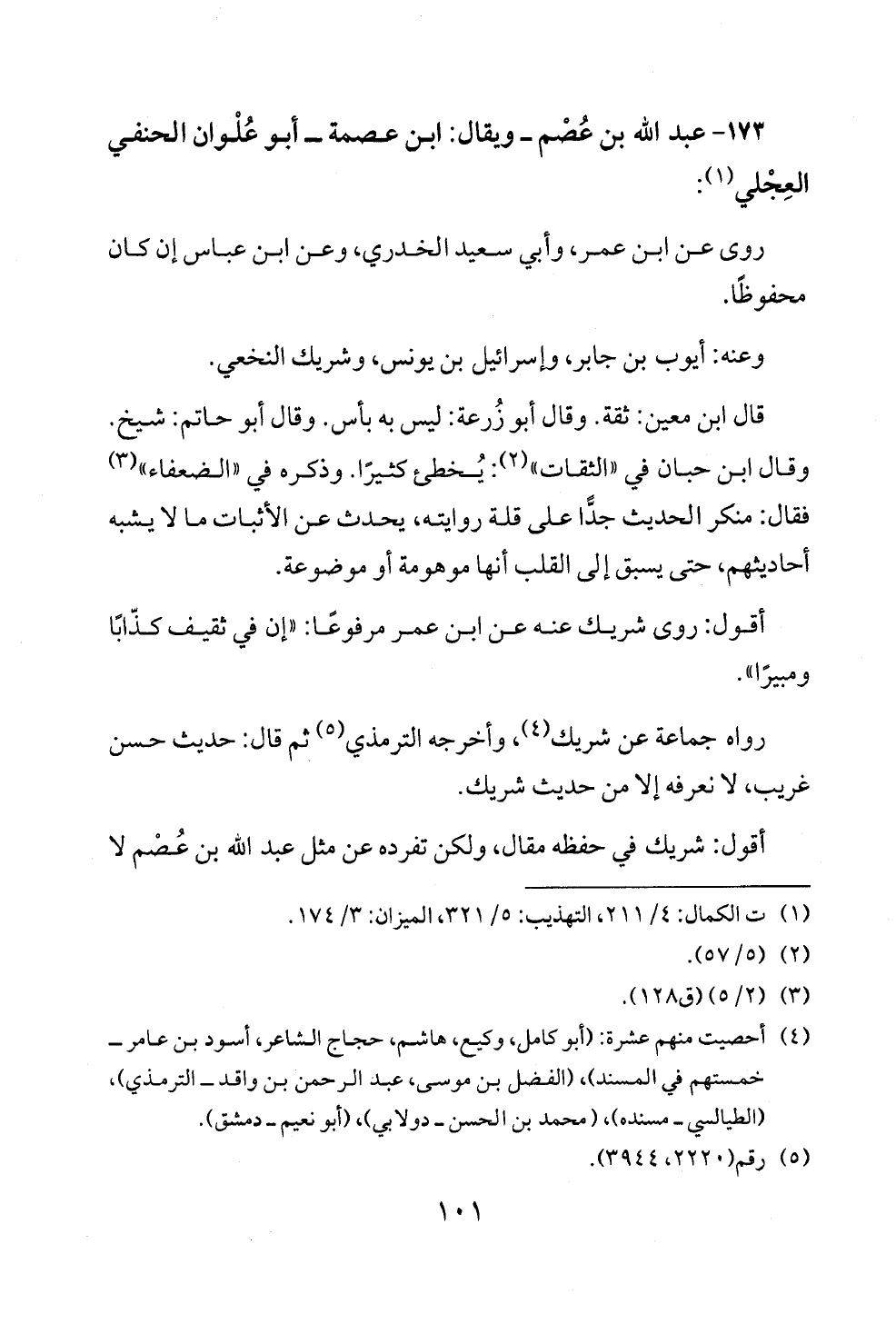 ١٧٣ - عبد الله بن عُصْم ــ ويقال: ابن عصمة ــ أبو عُلْوان الحنفي العِجْلي (¬١):