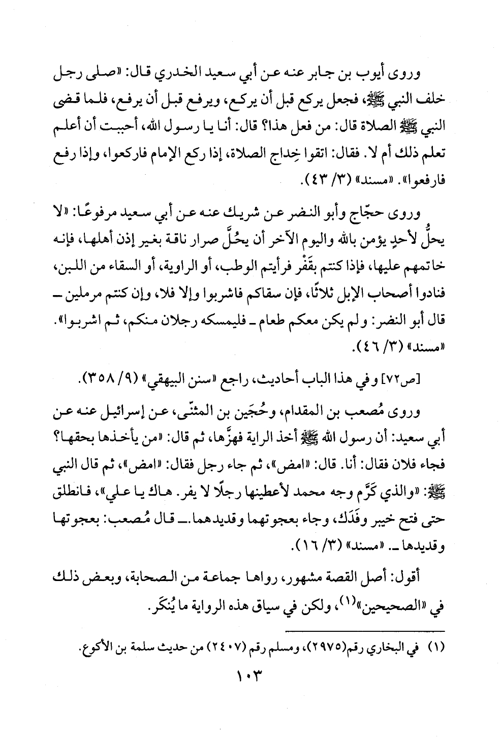 [ص ٧٢] وفي هذا الباب أحاديث، راجع «سنن البيهقي» (٩/ ٣٥٨).