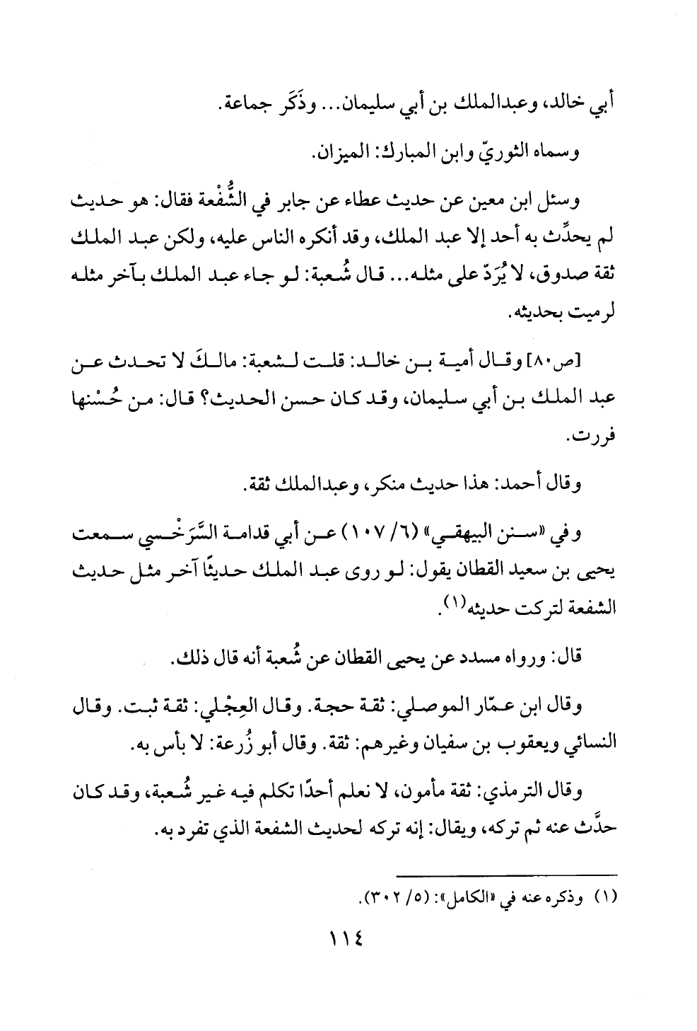 [ص ٨٠] وقال أمية بن خالد: قلت لشعبة: مالكَ لا تحدث عن عبد الملك بن أبي سليمان، وقد كان حسن الحديث؟ قال: من حُسْنها فررت.