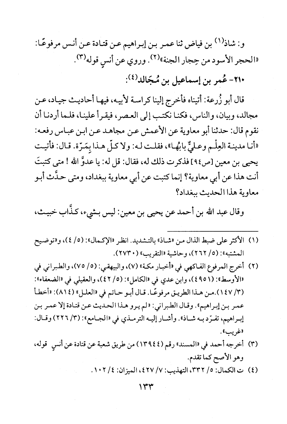 و: شاذ (¬١) بن فياض ثنا عمر بن إبراهيم عن قتادة عن أنس مرفوعًا: «الحجر الأسود من حِجار الجنة» (¬٢). وروي عن أنسٍ قوله (¬٣).
