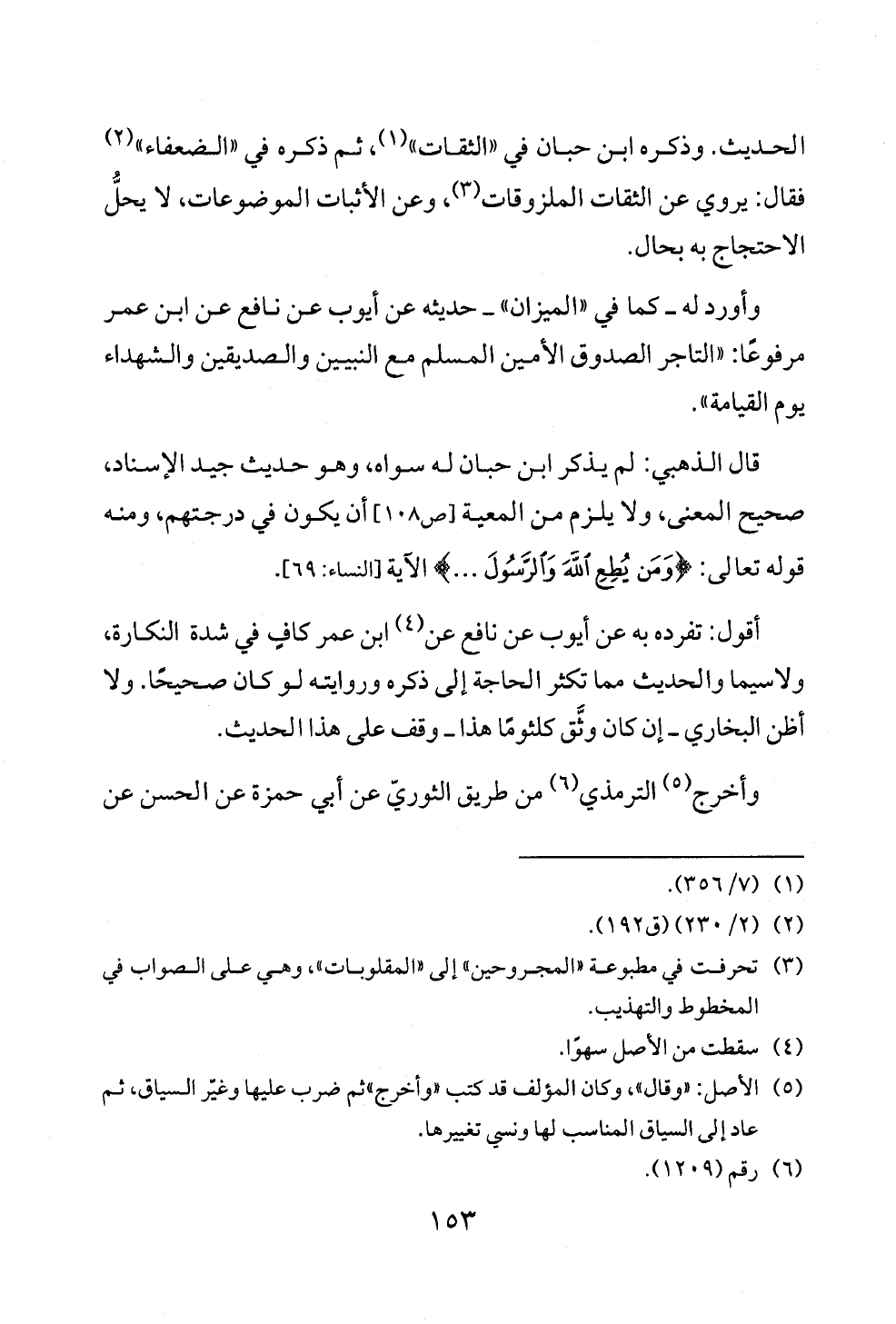 أقول: تفرده به عن أيوب عن نافع عن (¬٤) ابن عمر كافٍ في شدة النكارة، ولاسيما والحديث مما تكثر الحاجة إلى ذكره وروايته لو كان صحيحًا. ولا أظن البخاري ــ إن كان وثَّق كلثومًا هذا ــ وقف على هذا الحديث.