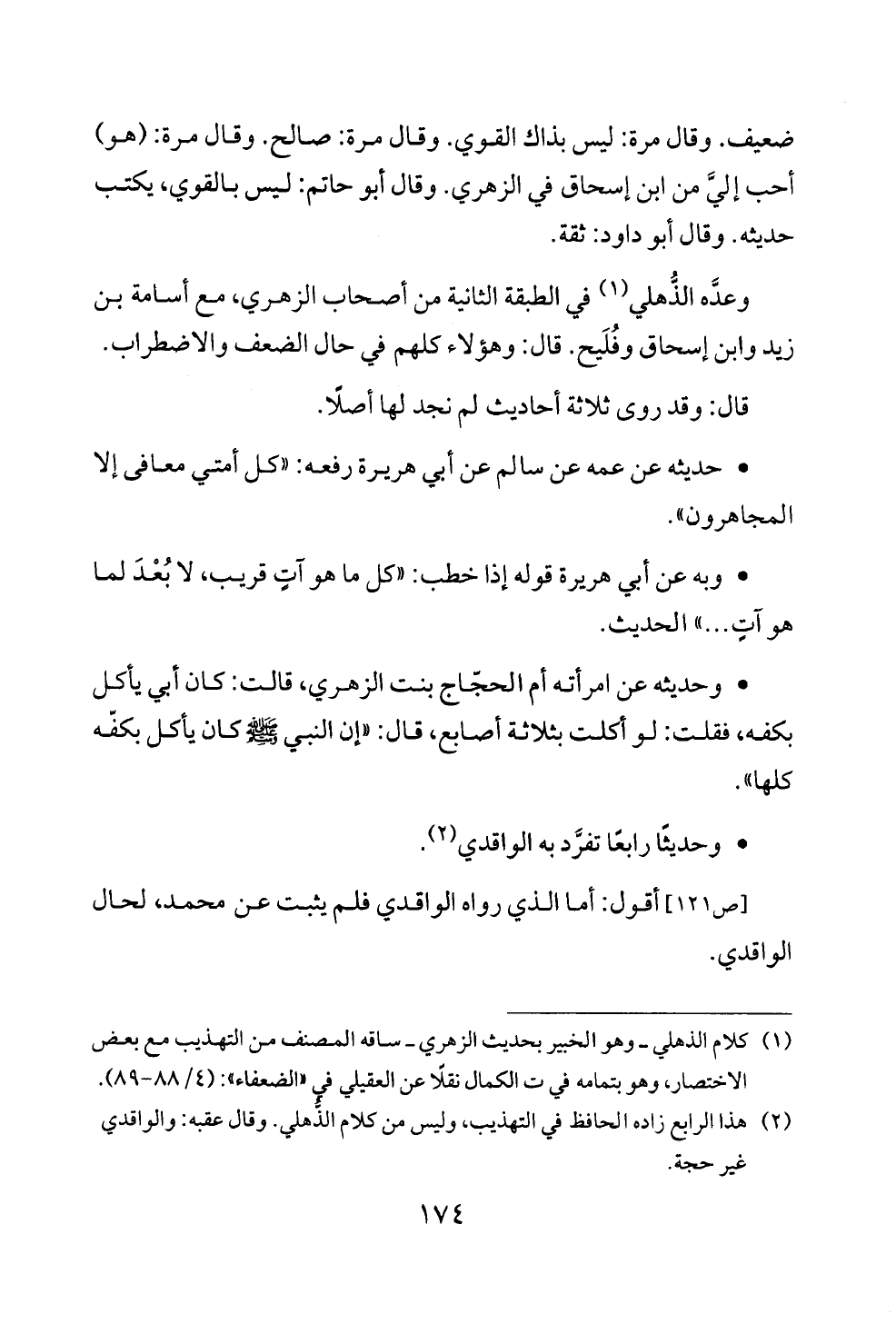 (¬٢) هذا الرابع زاده الحافظ في التهذيب، وليس من كلام الذُّهلي. وقال عقبه: والواقدي