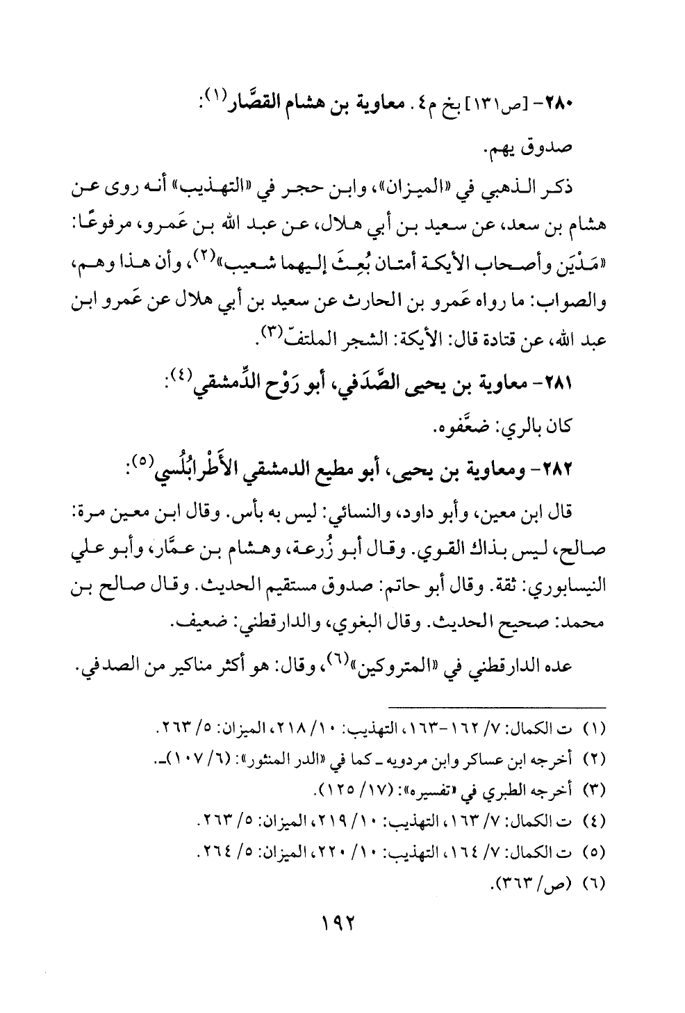 ٢٨١ - معاوية بن يحيى الصَّدَفي، أبو رَوْح الدِّمشقي (¬٤):