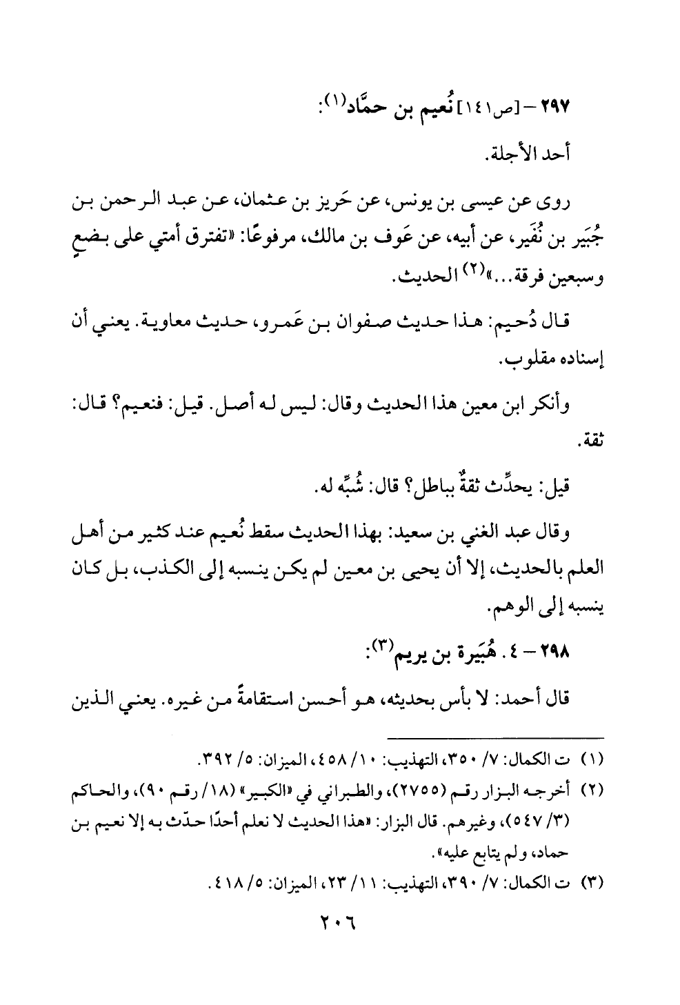 (¬٣) ت الكمال: ٧/ ٣٩٠، التهذيب: ١١/ ٢٣، الميزان: ٥/ ٤١٨.
