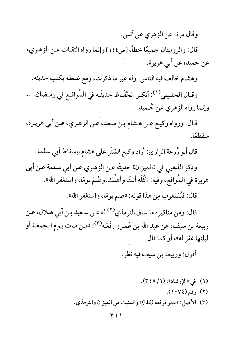 قال: والروايتان جميعًا خطأ، [ص ١٤٤] وإنما رواه الثقات عن الزهري، عن حميد، عن أبي هريرة.