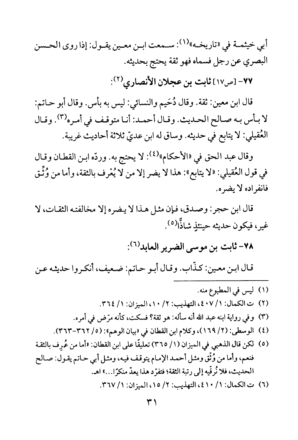 (¬٦) ت الكمال: ١/ ٤١٠، التهذيب: ٢/ ١٥، الميزان: ١/ ٣٦٧.