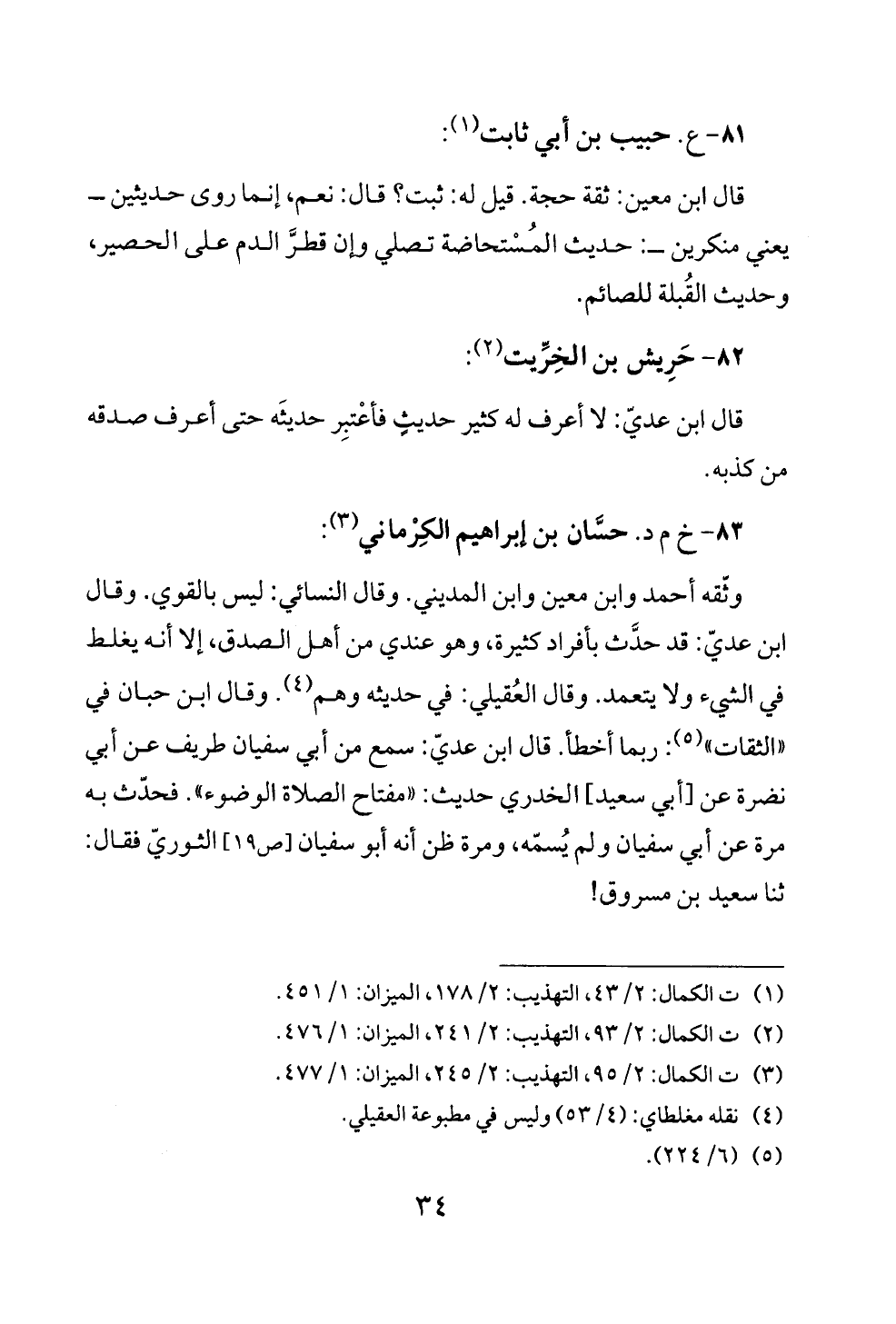 (¬٣) ت الكمال: ٢/ ٩٥، التهذيب: ٢/ ٢٤٥، الميزان: ١/ ٤٧٧.